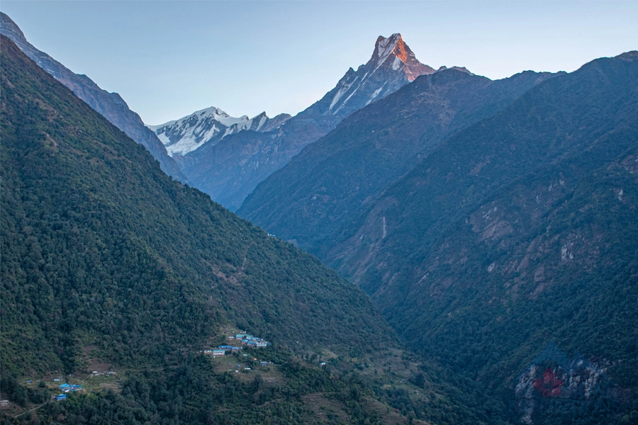 Your adventure begins with a scenic flight from Kathmandu to Pokhara, followed by a short drive to Dhampus, the starting point of the trek. The trail gradually ascends through Pothana and Bhichok Deurali, offering a comfortable introduction to the journey.